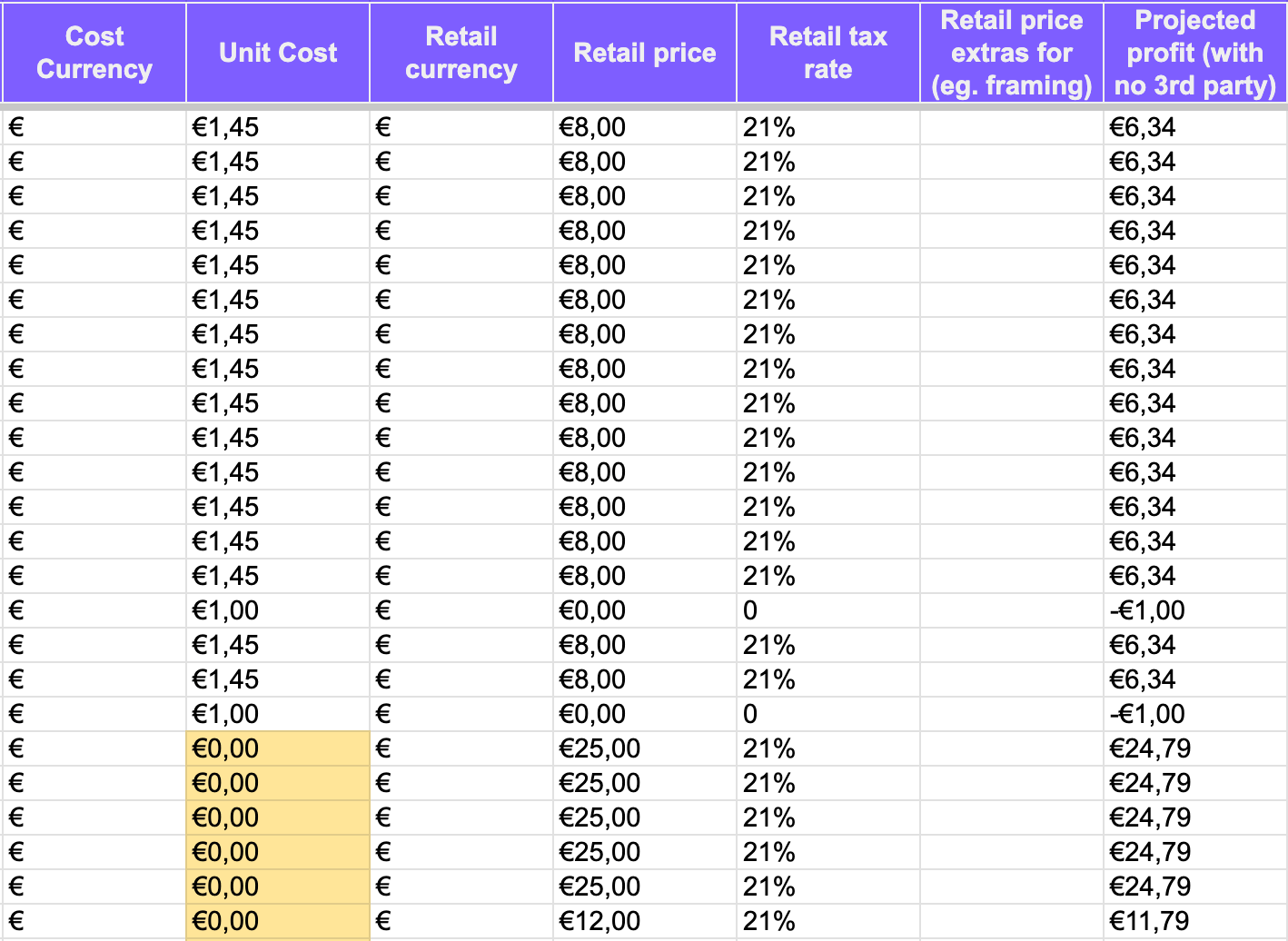 One column we love in this template is Projected Profit (with no third party), which automatically gives you a sense of what remains after taxes.