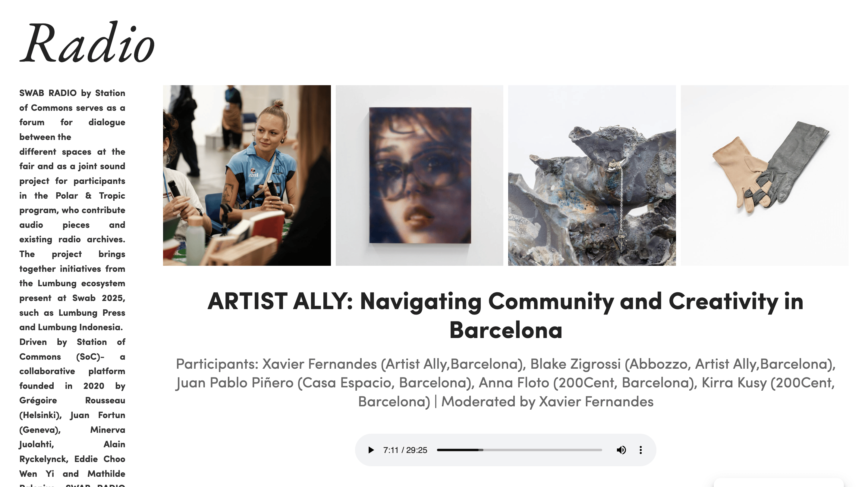 Participants: Xavier Fernandes (Artist Ally, Barcelona), Blake Zigrossi (Abbozzo Gallery, Toronto), Juan Pablo Piñero (Casa Espacio, Barcelona), Anna Floto (200Cent, Barcelona), Kirra Kusy (200Cent, Barcelona)
